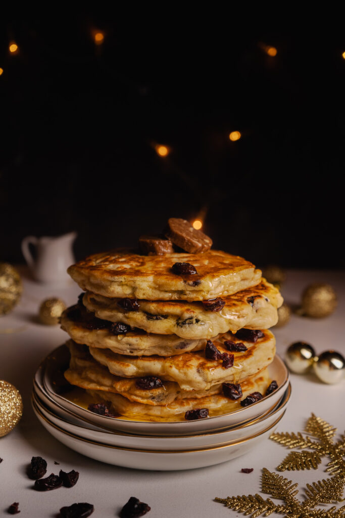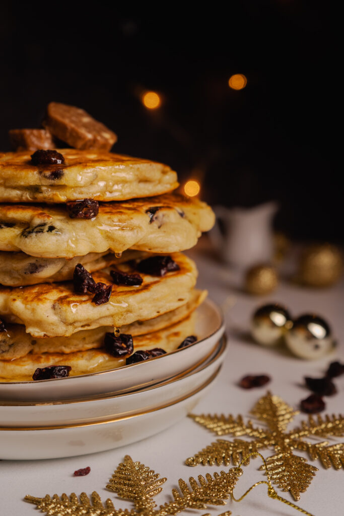 I don't think there is anybody in this world who would not love pancakes. I have to admit that the kind of pancakes that I eat weekly contain no sugar or butter and most of the time I add oats instead of flour. But sometimes I like to enjoy one decadent portion of American pancakes and this Christmassy combination found in one old BBC Good Food magazine was absolutely amazing.