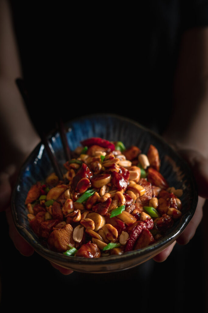 Kung Pao chicken has some key ingredients which you absolutely must add. Those are chilli peppers, peanuts and spring onion, everything covered in a luscious and delicious sauce. Serve it with a hot bowl of Jasmine rice and get ready to enjoy one of the best Chinese dishes!