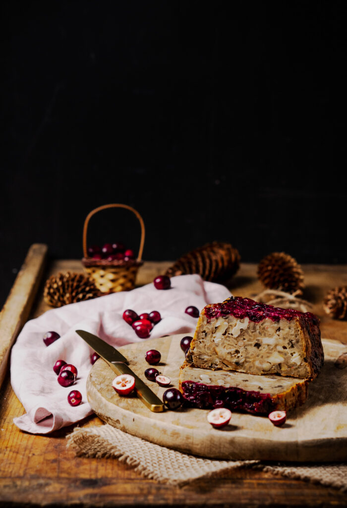 One of these is this delicious vegetarian loaf with mushrooms and cranberries. I know, it sounds unusual..but the sourness of the cranberries works so well with this loaf! It is also packed with protein, since it contains walnuts and almonds. The burst of flavour is simply amazing!