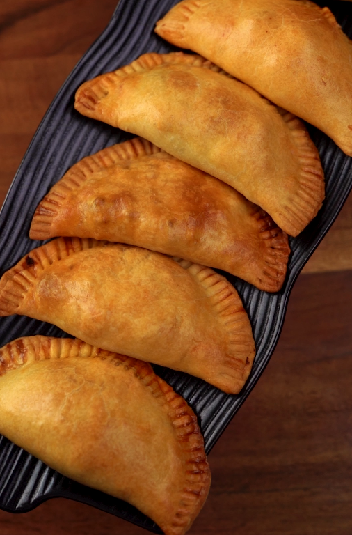 After 1 h, remove the dough and allow to rest for 10 minutes if it s too hard to start rolling it. I rolled it right away because it was hot in the house because of the lights. Fill each circle with a tablespoon of meat, then add the cheese, then seal it (brush the edges with water first), and use a fork to "fold" it (check my video to see how to seal it). Brush with beaten egg and bake for 25 minutes or until golden. Enjoy!