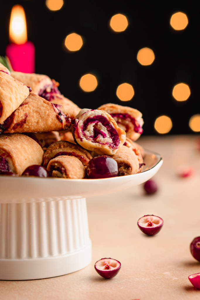 Rugelach, just like the famous Babka, originated in the Jewish communities of Poland. They are little baked crescent rolls containing a soft dough made of cream cheese, butter and flour. There are many variations of Rugelach: they contain various fruit jams or spreads like nutella or simple chocolate spreads.